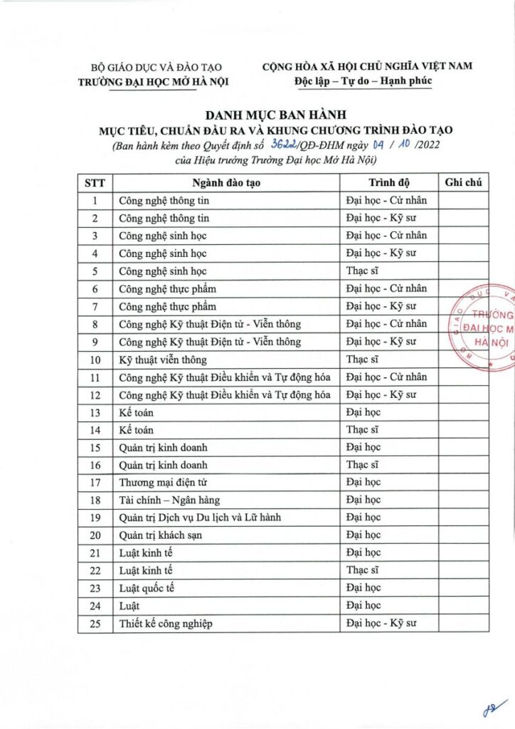 Quyết đinh số 3622/QĐ-ĐHM ngày 04/10/2022 ban hành mục tiêu, chuẩn đầu ra, chương trình khung ngành CNTT năm 2022.